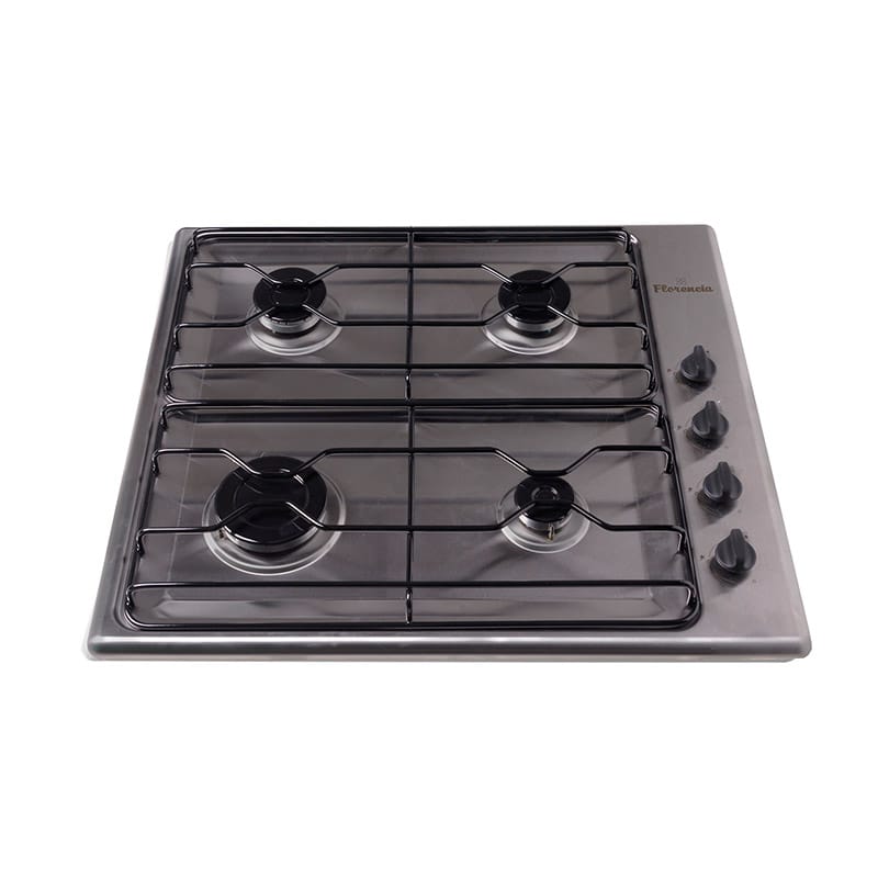 Anafe a gas de Acero Inoxidable de cuatro hornallas de alta durabilidad y válvulas de seguridad en cada hornalla.